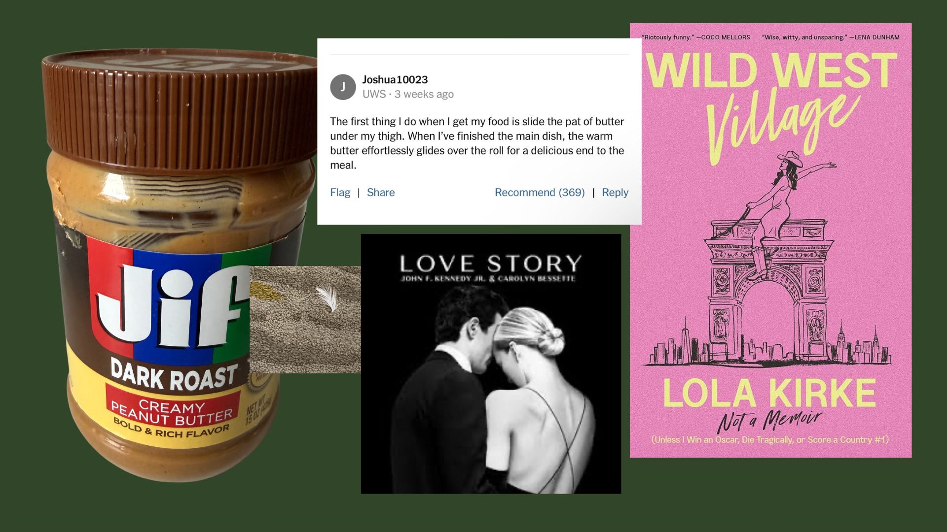 I PROMISE I have something better to say, I just can’t get it to stick together yet. I’m also distracted by planes, trains, automobiles, and reality TV. I’m also distracted by micromanaging a birthday party that I absolutely should be letting my husband take the reins on, but instead insist on the addition of things like candy wax lips and the exact right shade of amber plasticware. But here we are. Another week passed. More tiny things that brought me joy from Peanut Butter to yet another Kennedy re-imagining (I will never get sick of a Kennedy reimagining).